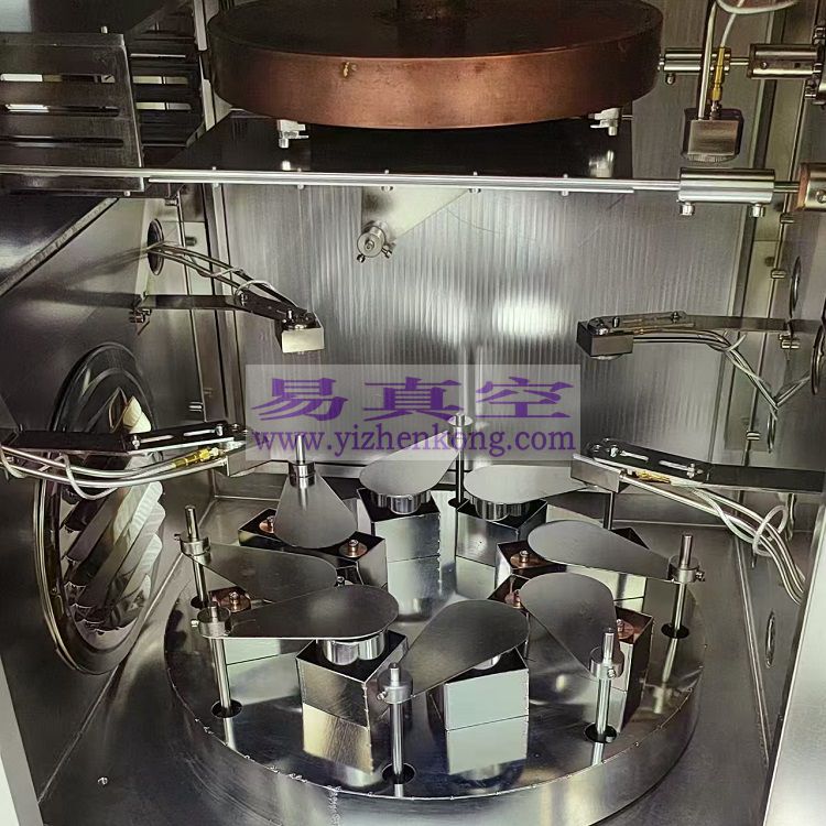 基片台:最大120mm基片/15~25mmITO/FTO玻璃25片,可定制一体化高精度刻蚀掩膜板,基片台公转,转速0~20r/min可调,衬底可选择加热(室温~300℃可调可控)或水冷,基片台可选升降,源基距最大350mm;