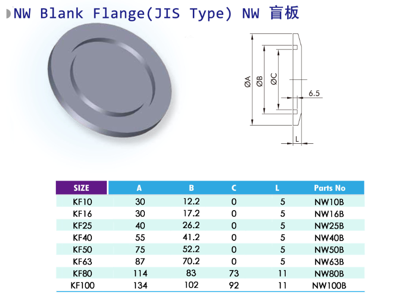 产品名称:KF真空快装盲板