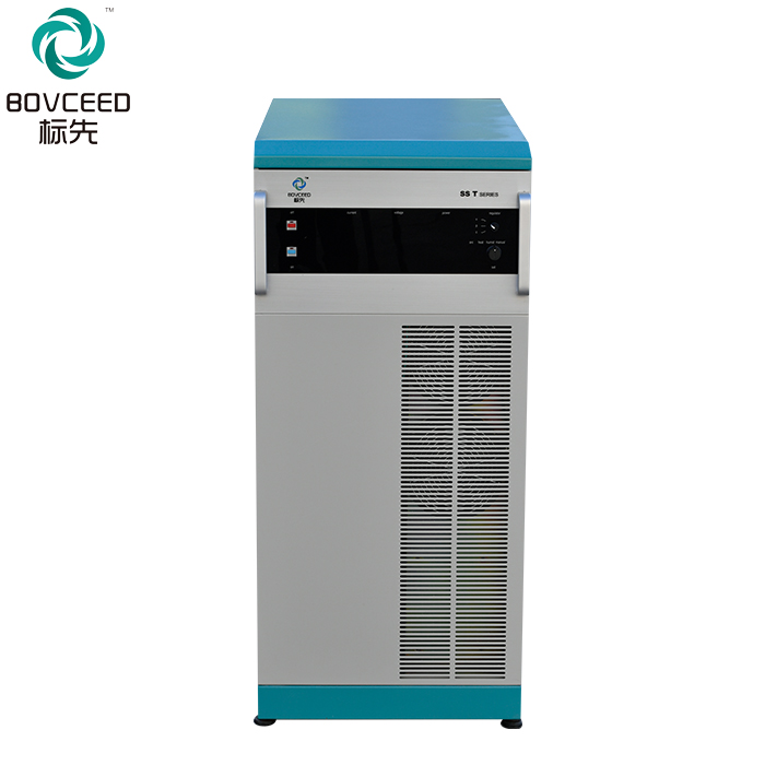 SST系列中频磁控溅射电源工作于二级高频变换模式,交流输出频率40kHz。中频溅射电源以两个溅射靶作为负载,双靶交替工作,因此工作周期内每个溅射靶有一半以上的时间为反向电压,使靶材表面积累电荷充分泄放,有利于抑制靶材弧光放电及表面中毒,特别适用于反应膜层环境使用。