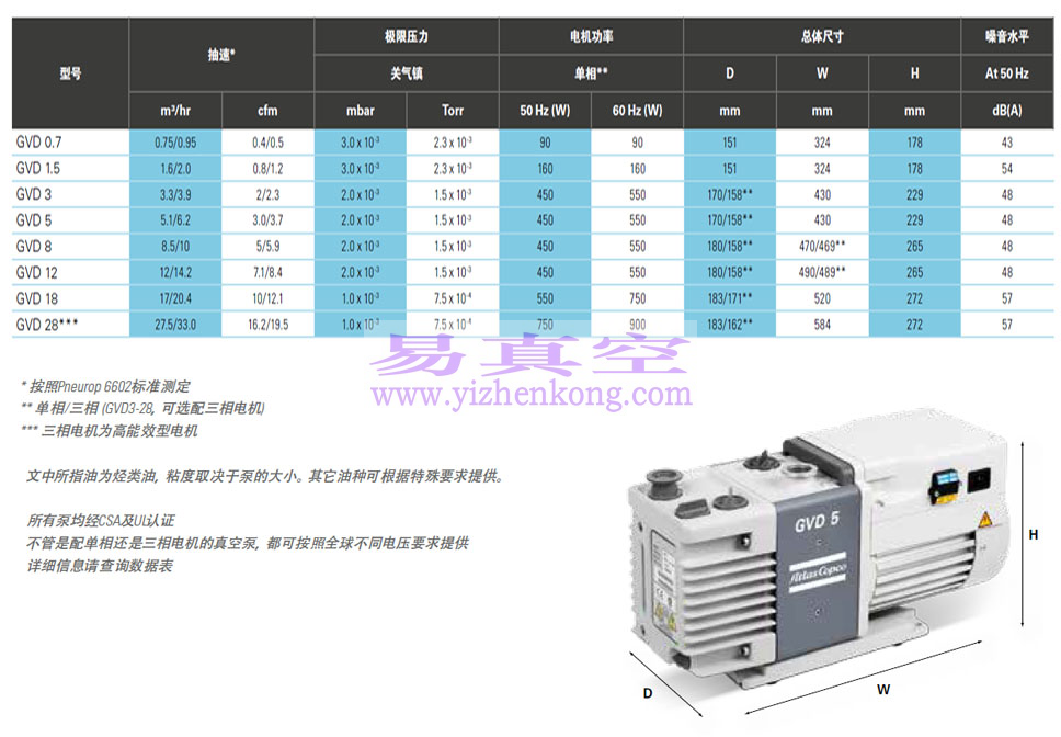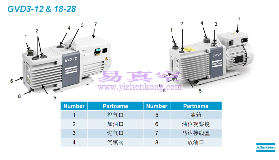 阿特拉斯·科普柯 GVD系列小型油润滑旋片式真空泵产品型号:GVD0.7、GVD1.5、GVD 3、GVD 5、GVD 8、GVD 12、GVD 18、GVD 28