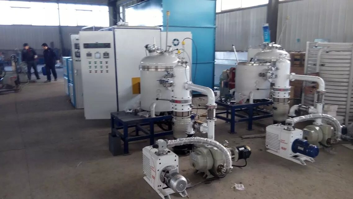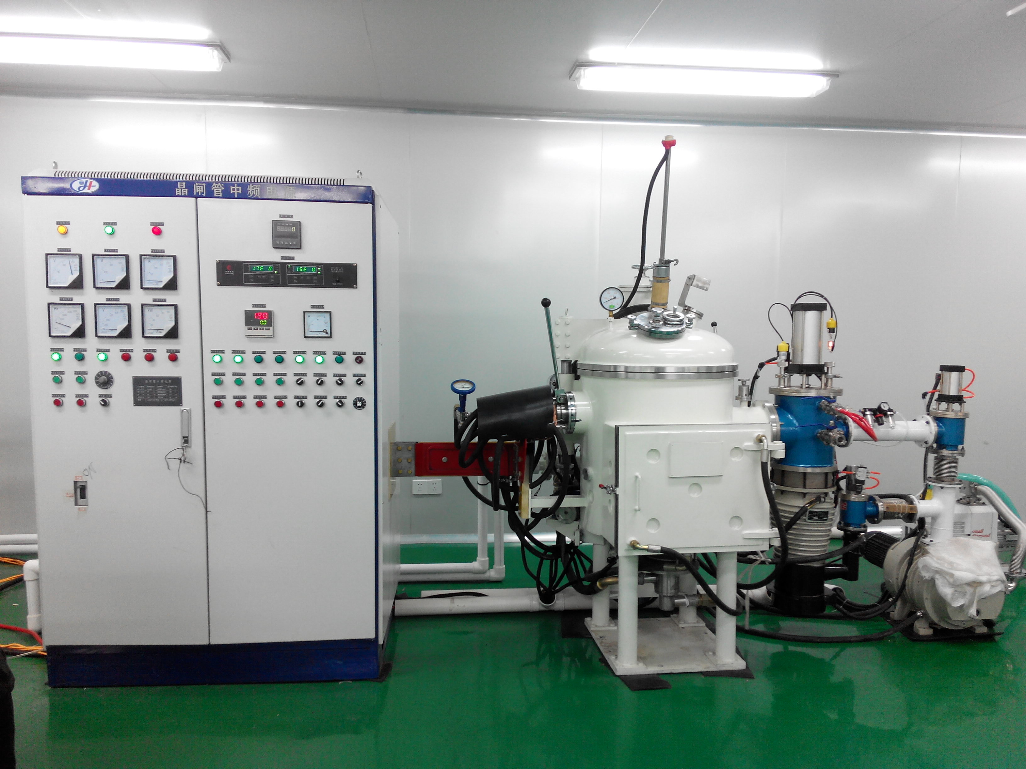 真空感应电炉是熔炼坩埚封闭在真空室中,利用电磁感应产生的涡流热做热源(电能转换成热能)。在真空状态下进行各种金属熔炼并浇铸,从而得到高质量材料的熔炼设备。 主要用于高温合金、精密合金,稀土材料,有色金属等特殊难熔金属的熔炼提纯。一般镁砂坩埚内温度可达到1700°C。氧化锆可以达到1900°C,如采用石墨等导电材质坩埚和适当保温材料时温度可达2200°C。能严格控制温度和合金成份,并具有电磁搅拌的能力。