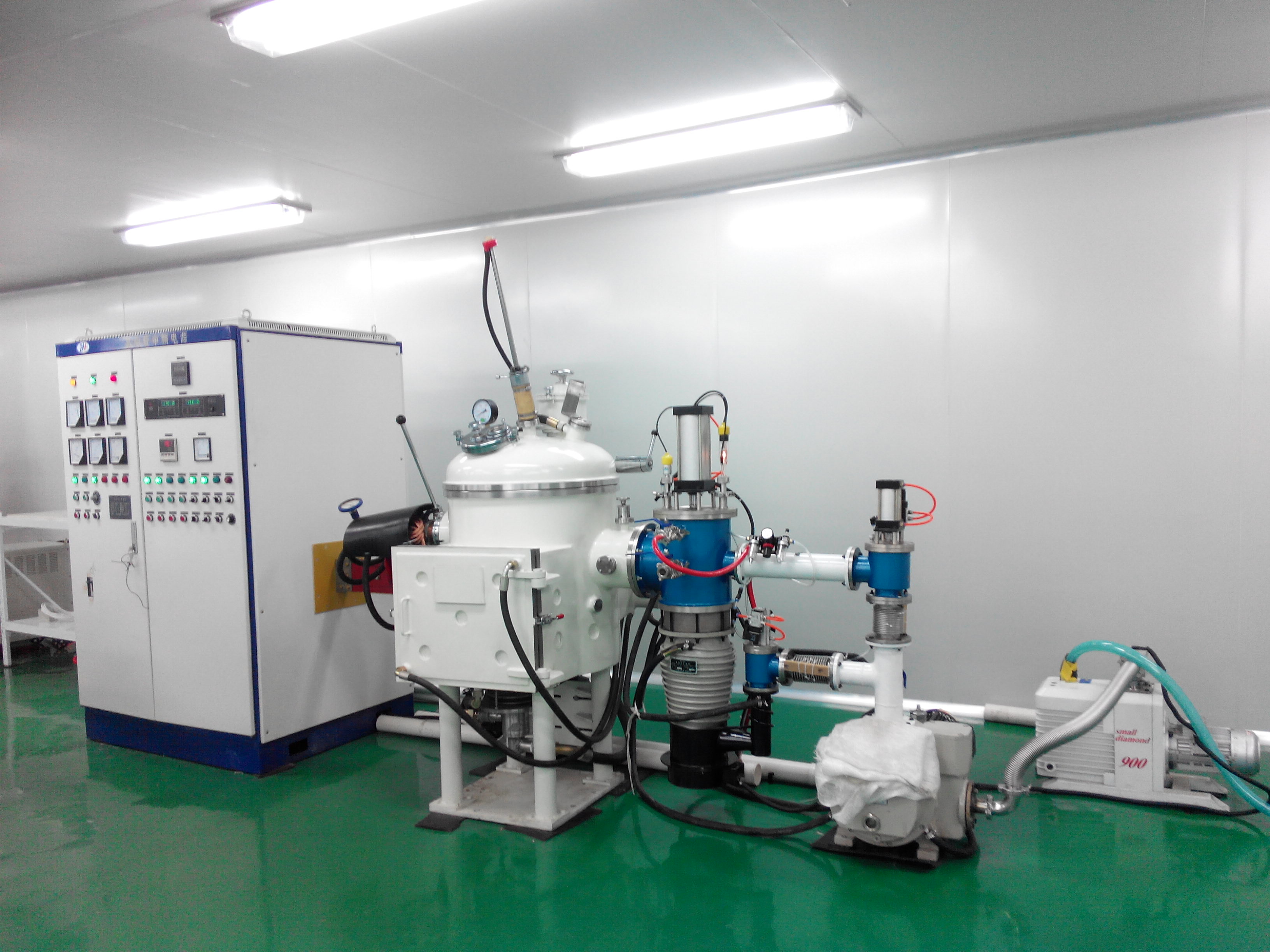 真空机组配置: K-200油扩散泵+ZJP-70罗茨泵+TRP-36直联机械泵 气动阀门