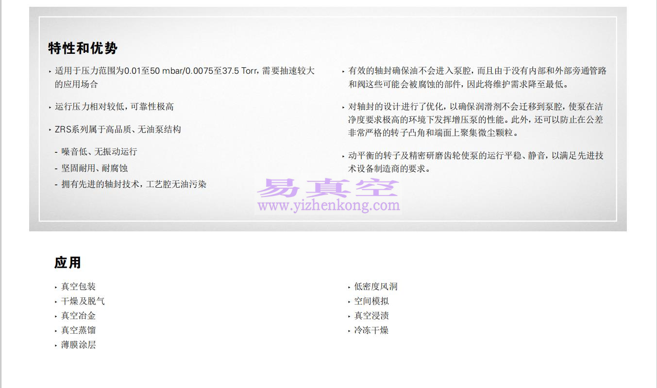阿特拉斯·科普柯ZRS机械增压泵系列产品参数: