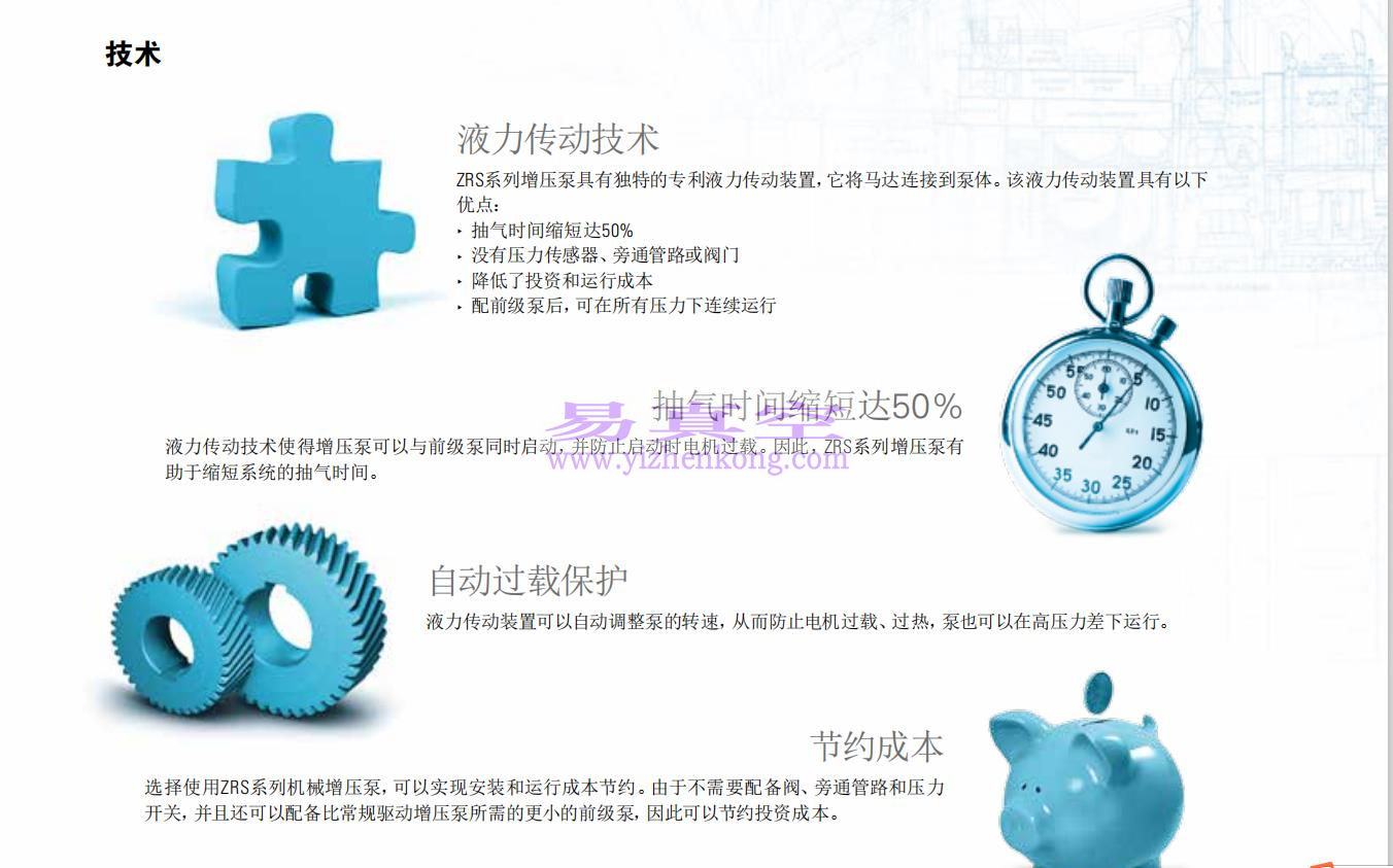 开关,并且还可以配备比常规驱动增压泵所需的更小的前级泵,因此可以节约投资成本。