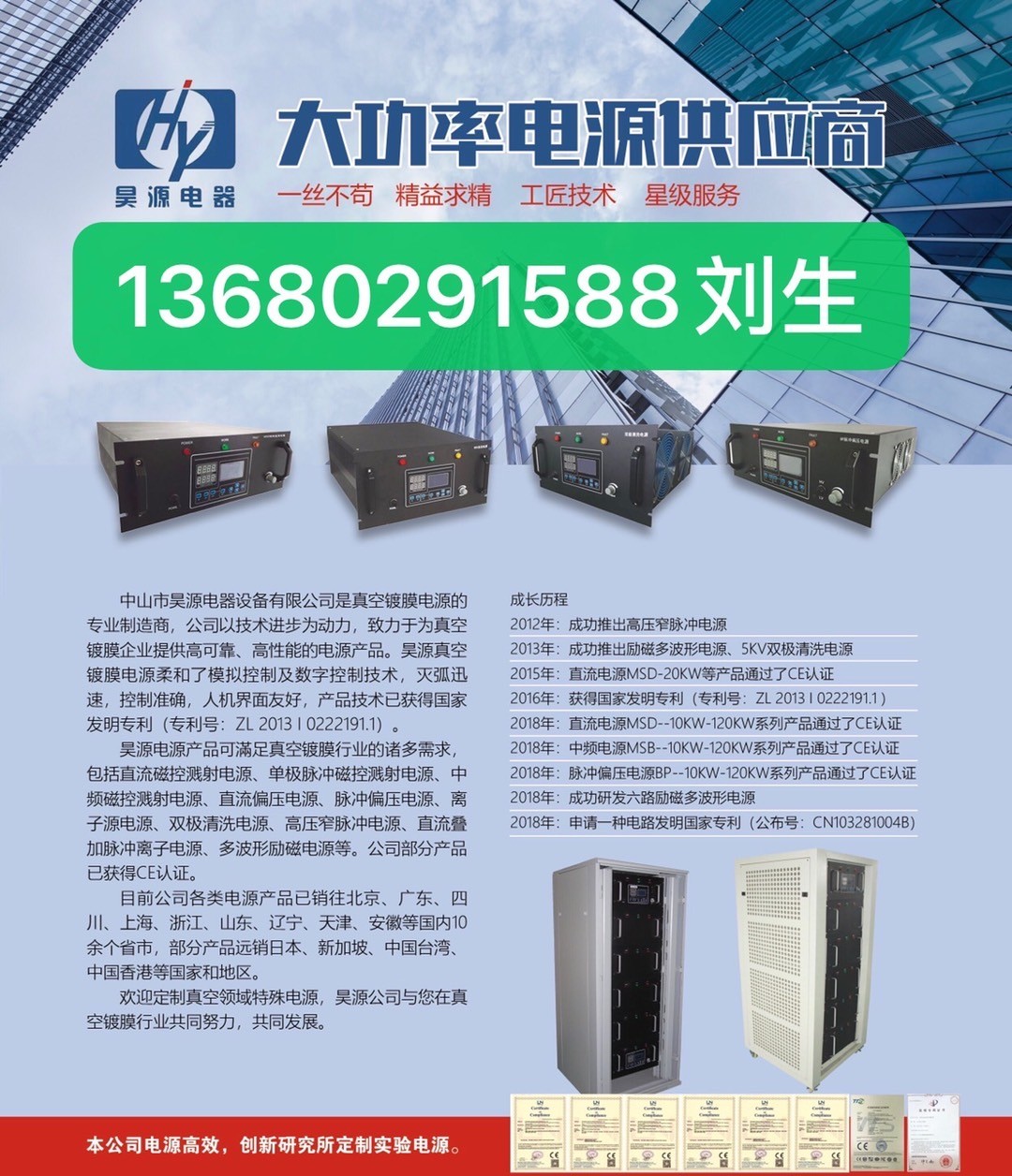 离子源电源、直流磁控电源、脉冲磁控电源、中频电源、脉冲偏压电源、直流偏压电源、多波形励磁电源、高压窄脉冲电源、双极清洗电源
